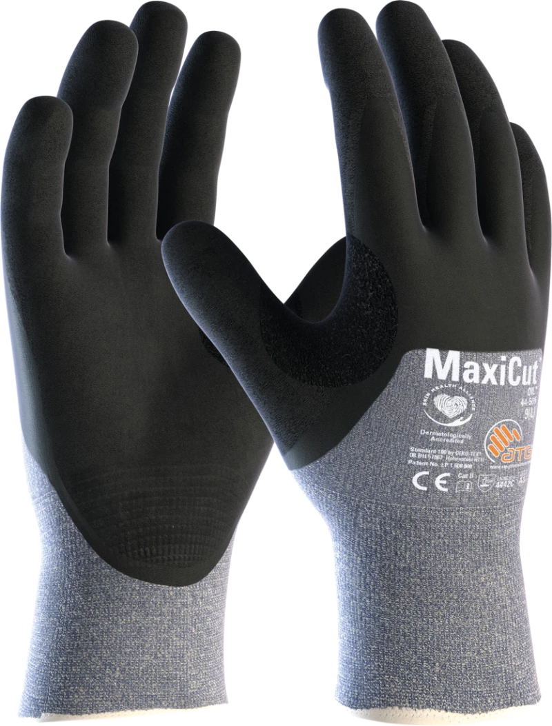 El guante MaxiCut Oil 44-505 combina la prevención contra cortes con comodidad, flexibilidad y movilidad, siendo ideal para entornos aceitosos o húmedos.